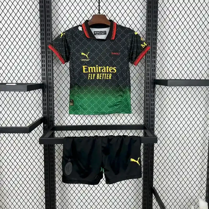 25/26 Kids AC Milan Black and Green Soccer Jersey