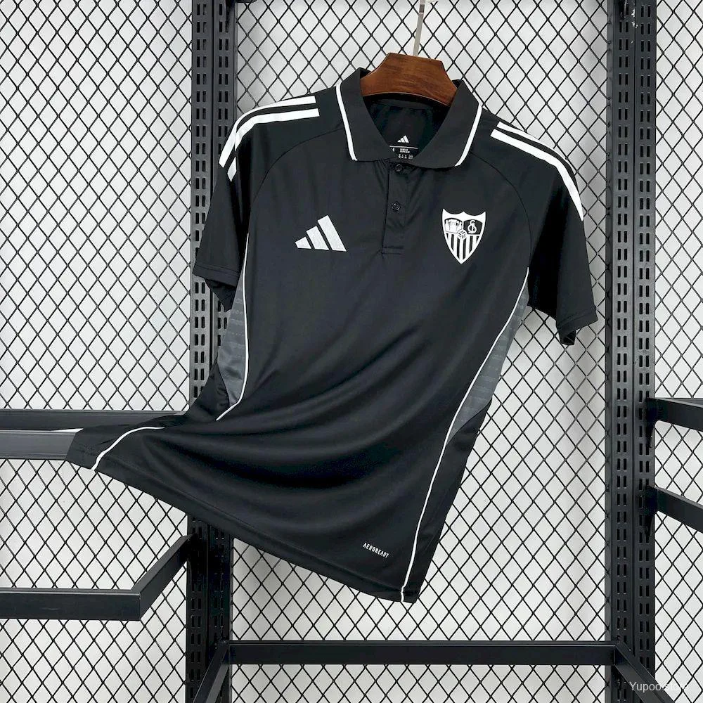 25/26 Mens Sevilla FC Black Travel Polo Jersey